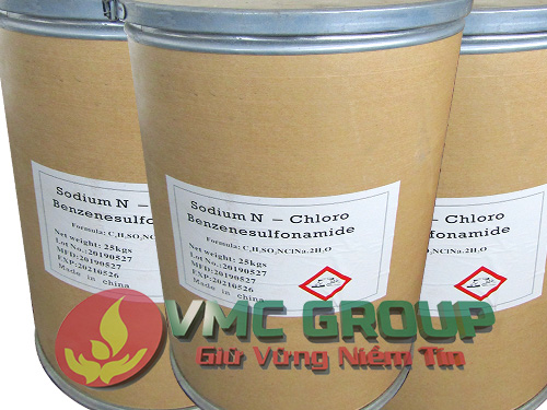 Hóa chất Cloramin B có thành phần chính là sodium benzensulfochloramin. Sản phẩm có công thức hóa học là C6H5SO2NClNa.3H2O với 25 – 27% là clo hoạt tính. Hóa chất này được sử dụng đa dạng với mục đích diệt khuẩn nguồn nước uống, nước sinh hoạt, hồ bơi an toàn. Không chỉ phục vụ cuộc sống hằng ngày, cloramin B còn được sử dụng để khử trùng trong một số ngành công nghiệp.