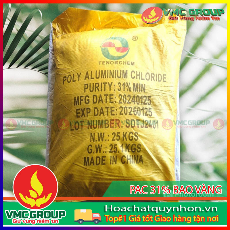 - Hóa chất keo tụ PAC 31%, keo tụ những cặn bẩn lơ lửng để xử lý nước cấp dân dụng, nước cấp công nghiệp, thích hợp với các nhà máy cấp nước sinh hoạt, hồ bơi trạm cấp nước,…