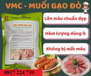 VMC MUỐI GẠO ĐỎ Là chất tạo màu , bảo quản , trong quá trình chế biến thực phẩm như: tạo màu hồng cho xúc xích , chà bông , lạp xưởng, nem chua …, . Giữ màu ổn định trong quá trình gia nhiệt.